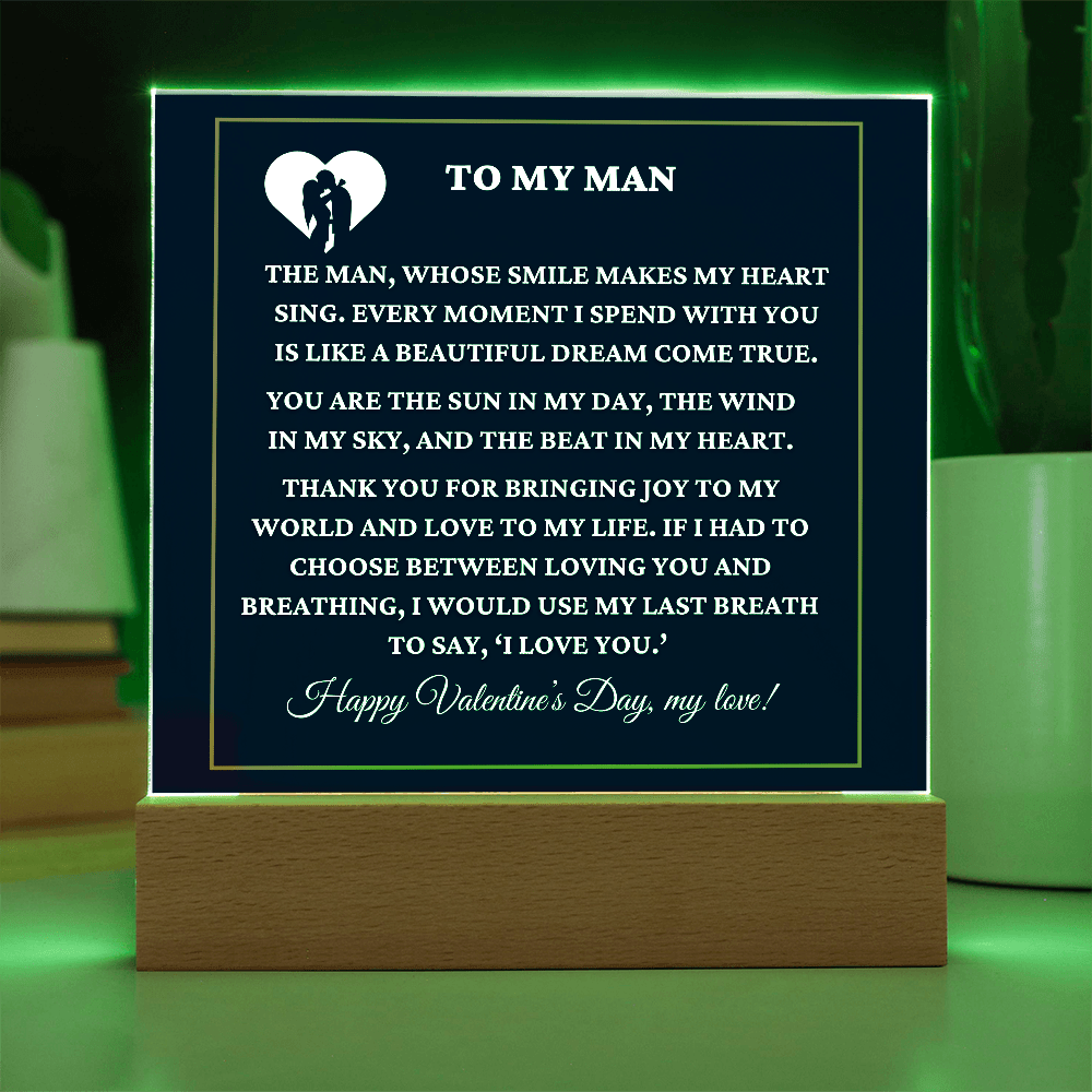 Show your love and appreciation with this beautifully designed acrylic plaque, a perfect keepsake to express how much your man means to you. Crafted with care and precision, this unique gift is ideal for anniversaries, birthdays, or any day you want to remind him how special he is. Its heartfelt message and elegant design make it a treasure he’ll cherish forever.